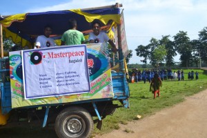- MasterPeace Club Bangladesh showing its activities on a giant screen to encourage and motivate mass people towards MasterPeace activities.