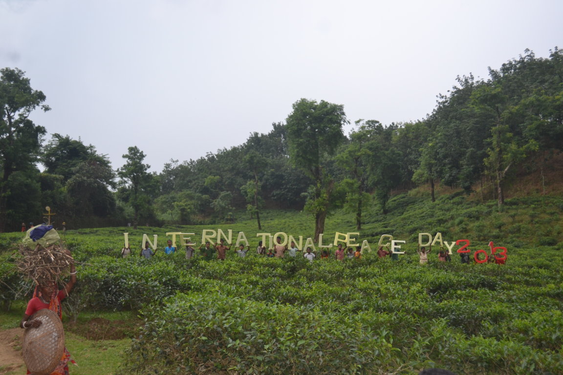 - Nelsons are displaying International Peace Day in a beautiful Tea Garden with colorful festoons.