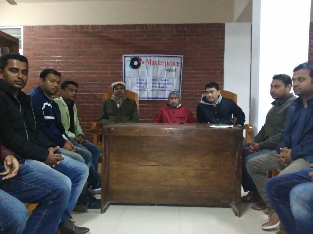 MasterPeace Bangladesh executive committee meeting with National Coordinator. In this meeting we prepared working plan for next three months in 2018. Representative from regional Club Moulvibazar, umbrella organization, and executive committee members were present.