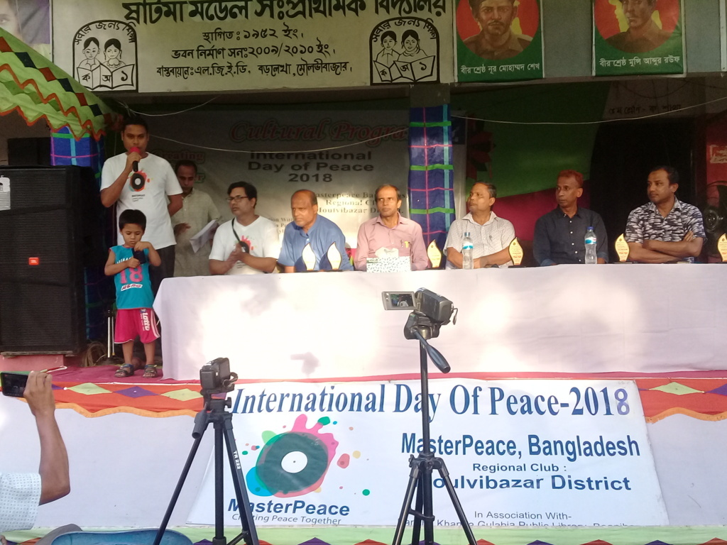 21st September, on the occasion of International Day of Peace 2018, MasterPeace Bangladesh organized series of events. As part of this, one of it’s regional club, Moulvibazar District, has organized a cultural program includes music competition, and a reception for selected citizens who dedicated themselves for arts, culture and society and thereby contributing for building a peaceful society. The program was held at Baralka Moulvibazar where guests from civil society, lawyer, social and cultural workers were present and honored. The program ended with musical event where talents from Moulvibazar district performed music, dance, and drama. The event was aired live at
